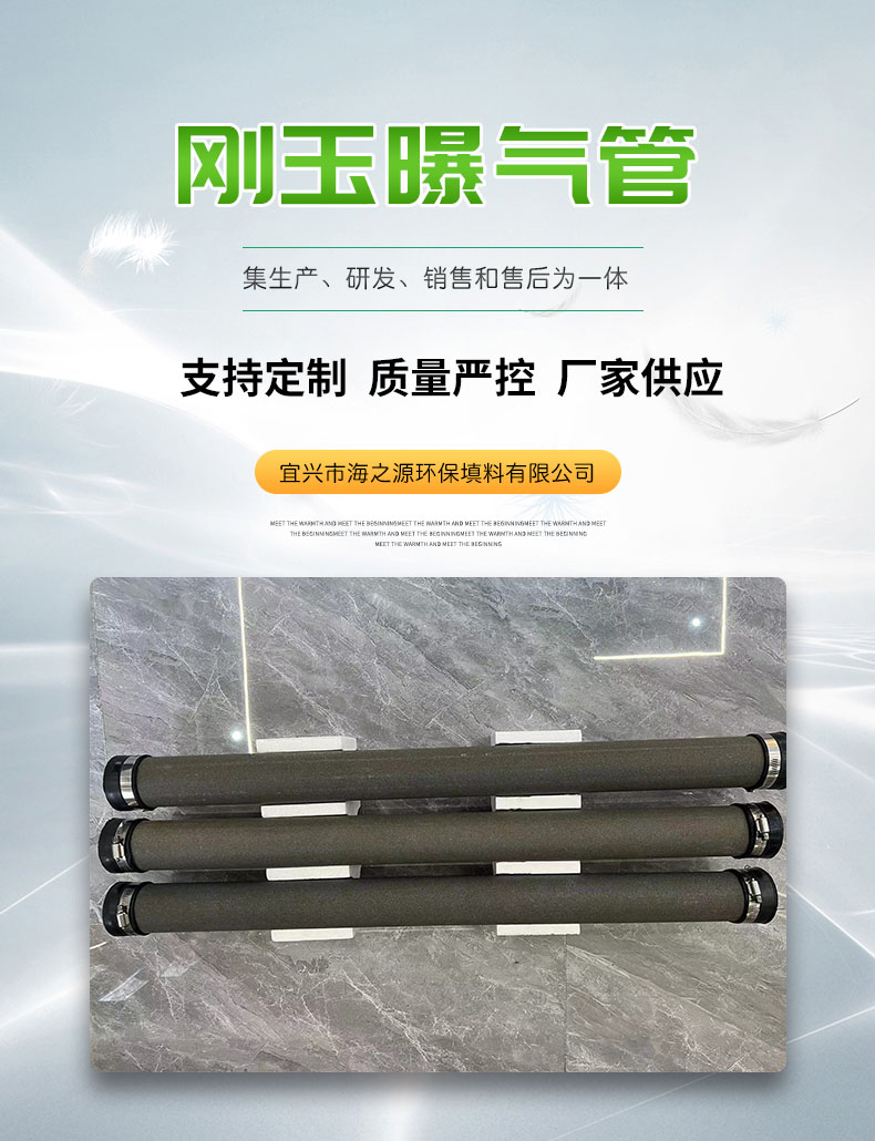 剛玉曝氣管是具有高效、低耗、運行可靠、充氣量大、攪動性強、阻力小,耐老化、防腐蝕、壽命長等特點。